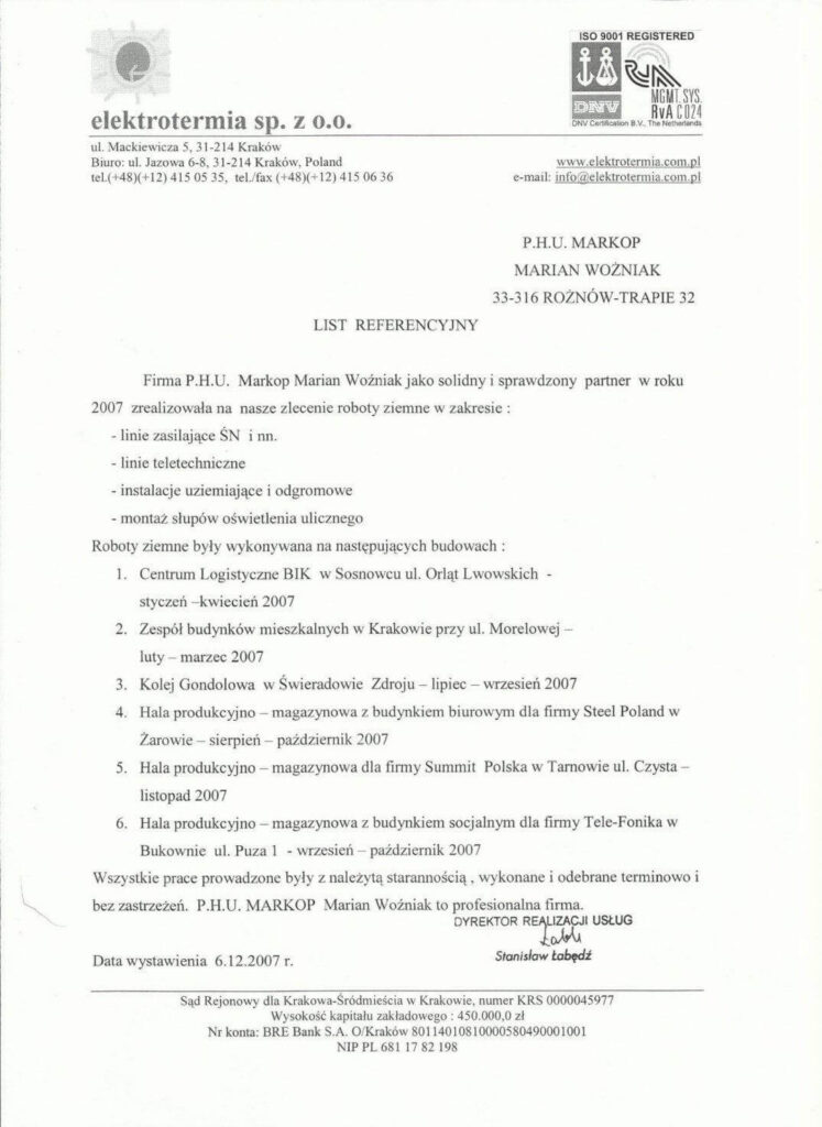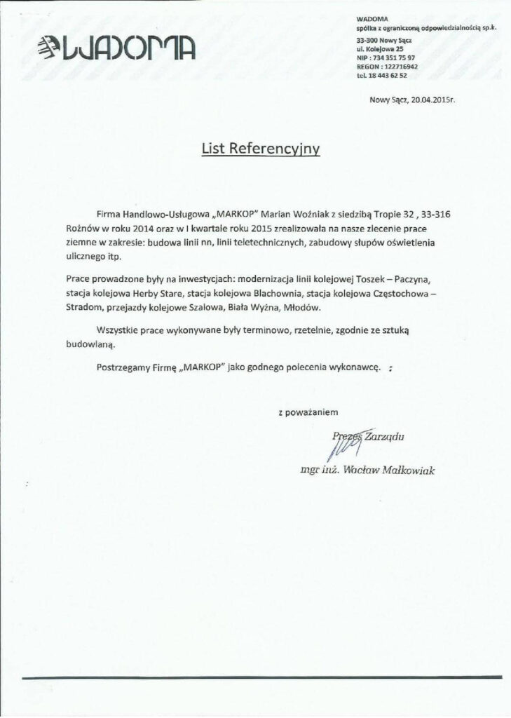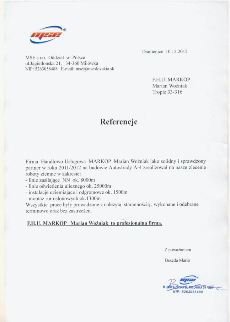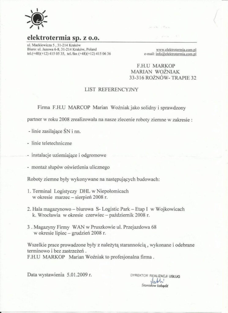 Oprócz klientów indywidualnych, współpracujemy również z urzędami gmin, przedsiębiorstwami z branży kolejowej, firmami elektrycznymi i telekomunikacyjnymi, podmiotami budującymi sieci kanalizacyjne i wodociągowe, przedsiębiorstwami realizującymi systemy sanitarne.